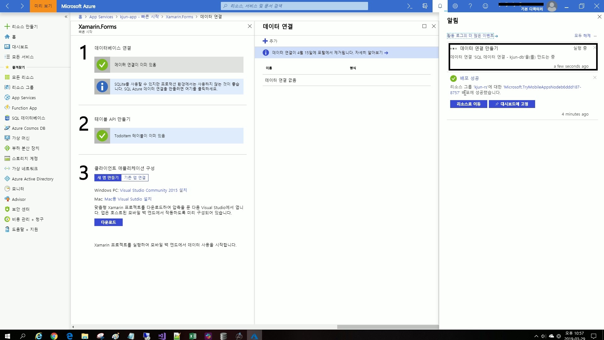(Xamarin) Azure 를 이용한 Xamarin.Forms 앱 만들기